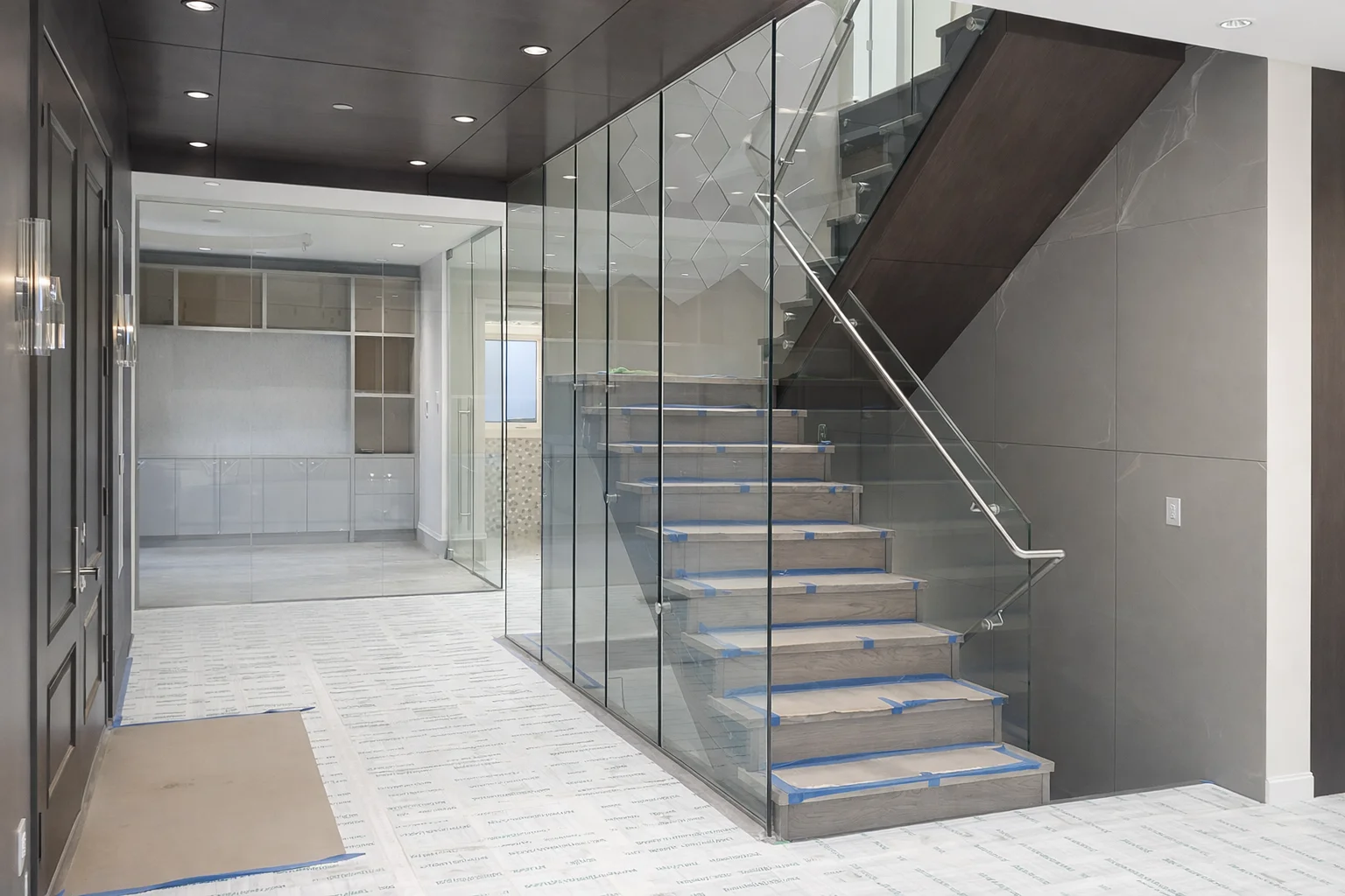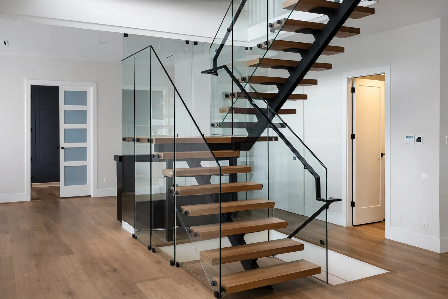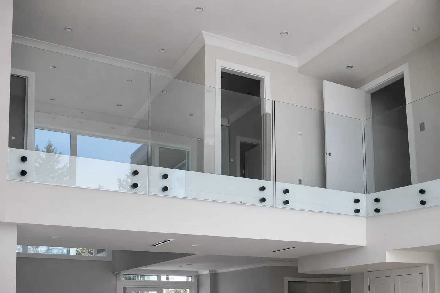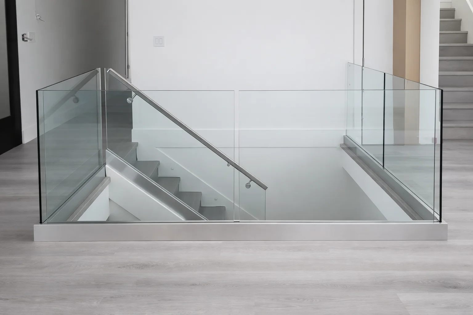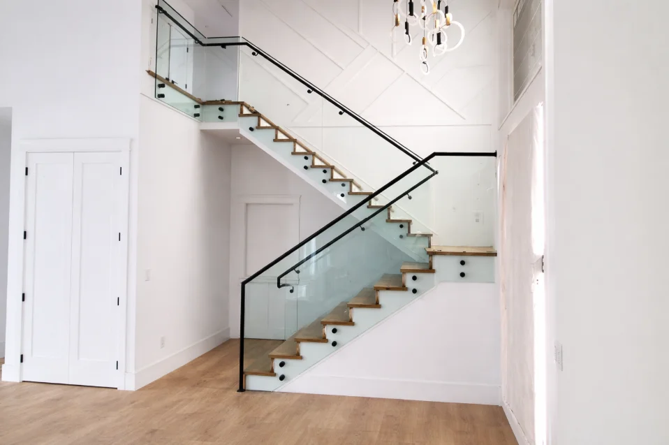 Elegant glass staircase railings that add light and sophistication to your home.