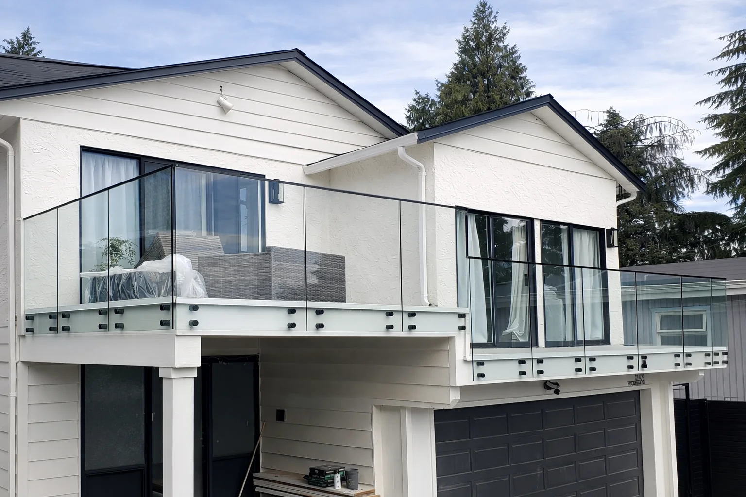 Modern glass balcony railings for condos and homes in Coquitlam and Port Moody.