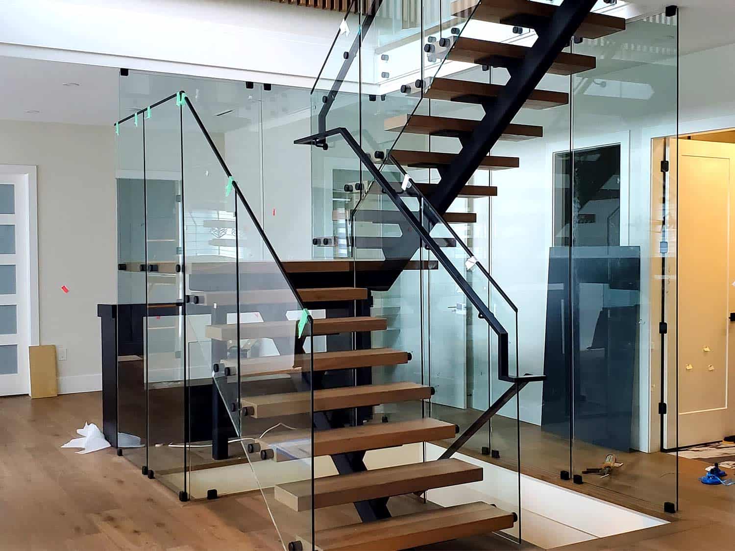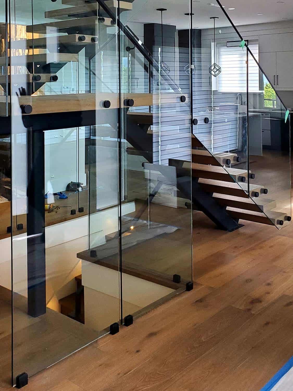 During installation, each panel is carefully leveled, and the standoffs are mounted to the vertical face of stairs, balconies, or floor systems. This method eliminates the need for bulky frames, resulting in a clean, minimalist aesthetic while maintaining durability and stability. Ideal for both residential and commercial applications, standoff glass railings provide a sophisticated balance of safety, style, and functionality, making them a preferred choice for enhancing any space.